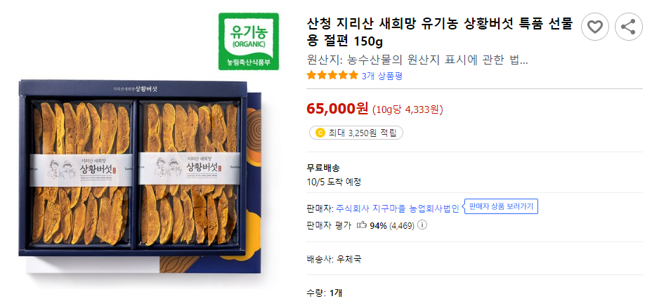 산청 상황버섯 택배 주문