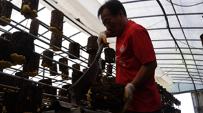 게다가 상황버섯은 고온 작물이므로, 더위와 습도를 묵묵히 견디며 작업해야 합니다 이렇게 힘들게 수확한 상황버섯은 약 55℃의 고온에서 15시간 동안 건조한 후에야 비로소 보관됩니다 수확된 상황버섯은 상태에 따라 10여 단계로 선별됩니다 이후에는 일일이 솔로 깨끗하게 털어준 후, 마침내 소비자에게 보내집니다